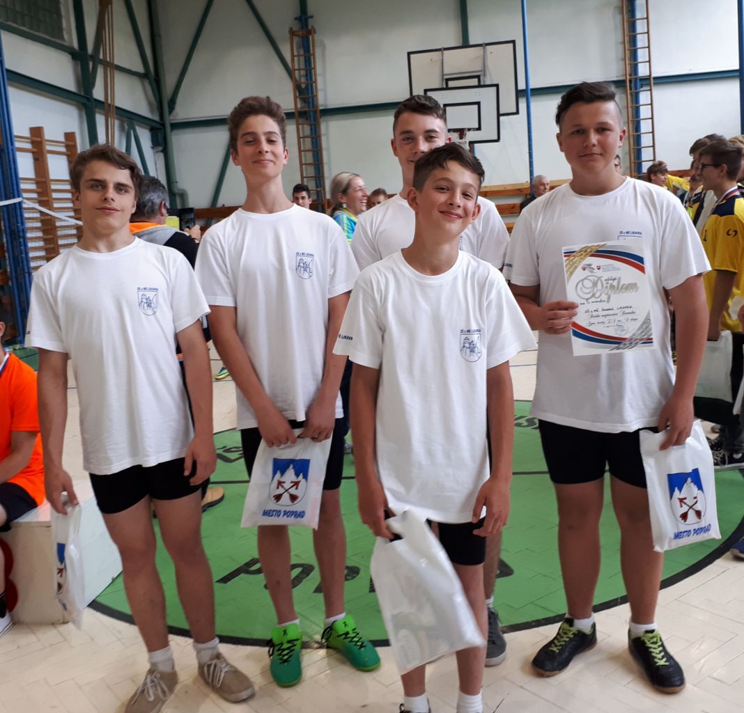 Chlapci Adrián Lúdik, Damián Solár, Samuel Šindléry, Sebastián Macko (všetci 9. A trieda), Jakub Mokoš (6. B trieda) úspešne reprezentovali ZŠ s MŠ Likavka. Po dlhom a náročnom dni, pretože ich kategória štartovala až v popoludňajších hodinách, vybojovali nádherné zaslúžené 5. miesto (celkový počet účastníkov 8). Ich snaha, strávené hodiny v gymnastickej telocvični v Sokolovni v Ružomberku, mozole na rukách, toto všetko si zaslúži veľký obdiv a samozrejme poďakovanie.