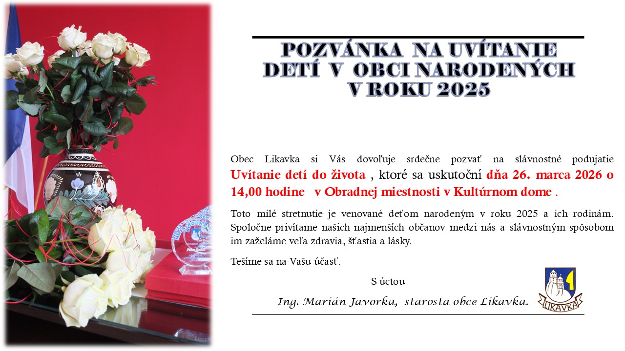 Spoločne privítame našich najmenších občanov medzi nás a slávnostným spôsobom im zaželáme veľa zdravia, šťastia a lásky.