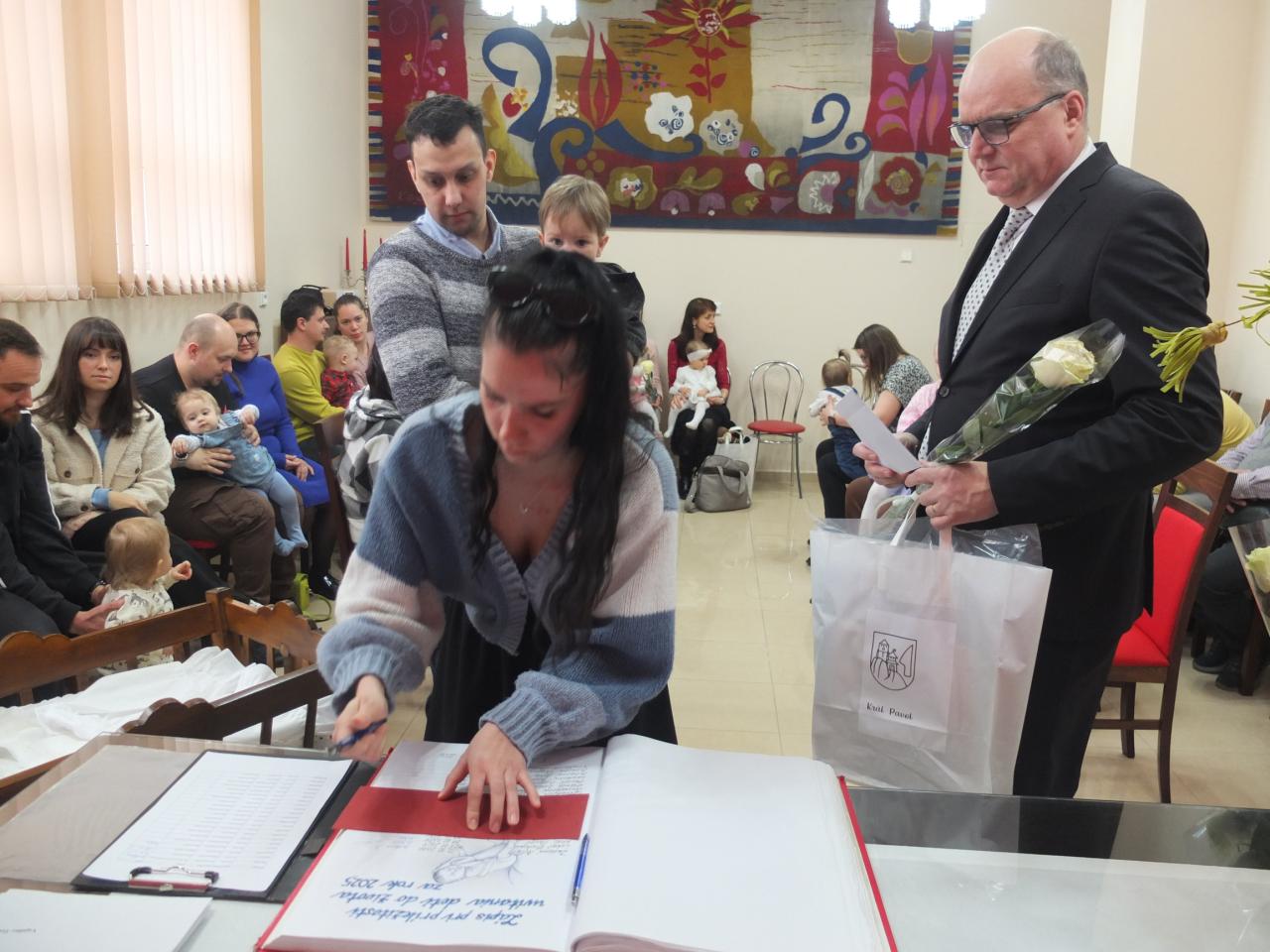 Starosta obce sa vo svojom príhovore srdečne prihovoril rodičom a poprial im veľa radosti, trpezlivosti a lásky pri výchove ich detí. Následne matrikárka slávnostne predstavila 21. nových občanov našej obce.