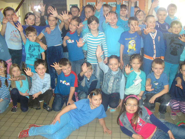 Začiatok vyučovania sa niesol poučnou reláciou o charakteristike vody, jej nutnosti i potrebe ochrany tejto absolútne nepostrádateľne dôležitej súčasti každej formy života. Poukázali sme na desatoro zdravého pitného režimu, pričom sme danú myšlienku podporili rozdávaním čaju a čistej vody žiačkami ôsmeho ročníka všetkým žiakom školy počas prestávok v rámci vyučovania. Výchovno-vzdelávací proces v daný deň sa niesol v duchu slova VODA, t.j. všetci od tých najmenších sa oboznámili so základným princípom kolobehu vody v prírode, čítali zaujímavé príbehy o Cestovateľke Kvapke, cvičili si pravopis pri vodných úlohách a samozrejme riešili aj Mokré príklady. Naši najmenší sa na výchovách učili mokré pesničky a tvorili Farebne- nezbedné rybičky. A aby sme nezabudli na náš Modrý mokrý deň, aj seba sme navliekli do farieb vody a pod podporou p. učiteľky T. Stanickej hľadali optimálne riešenia problémových otázok znečistenia vodných zdrojov.