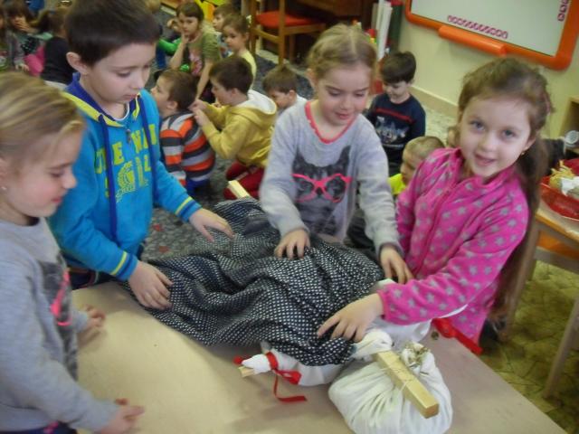 Prirodzený záujem o poznanie sa u detí prebúdza v kontakte s reálnou životnou situáciou, ktorá im je blízka, a tak sme si v jedno marcové dopoludnie v našej materskej škole spoločným úsilím s deťmi Murienu vyrobili. Obliekli sme ju do kroja a v sprievode za spevu piesní a recitovania rôznych obradných básní sme Murienu odniesli k blízkemu potoku Likava, kde sme ju symbolicky hodili do vody.